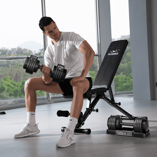 Currently, Flybird adjustable dumbbells are made from materials such as cast iron, steel, and rubber, ensuring durability and safety.