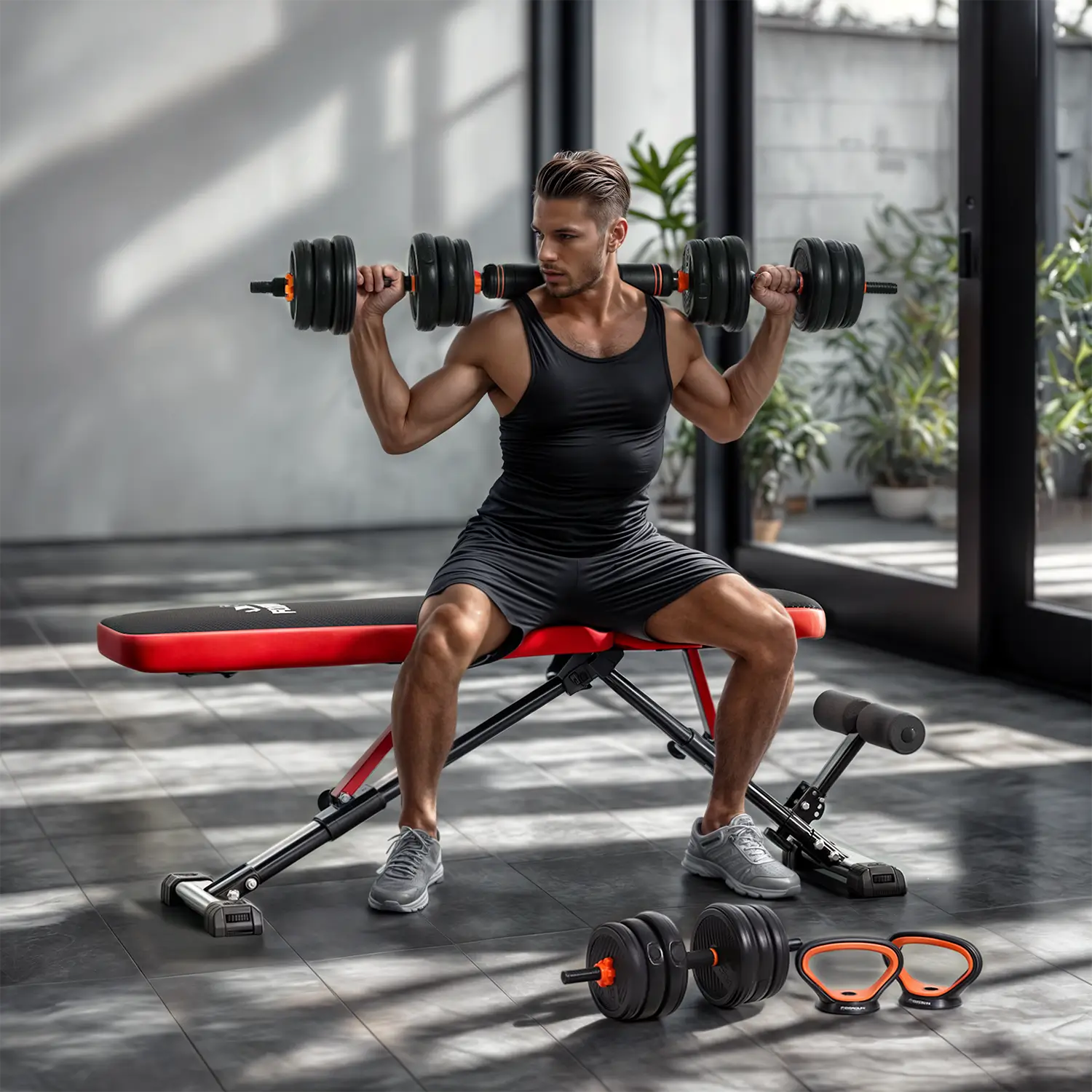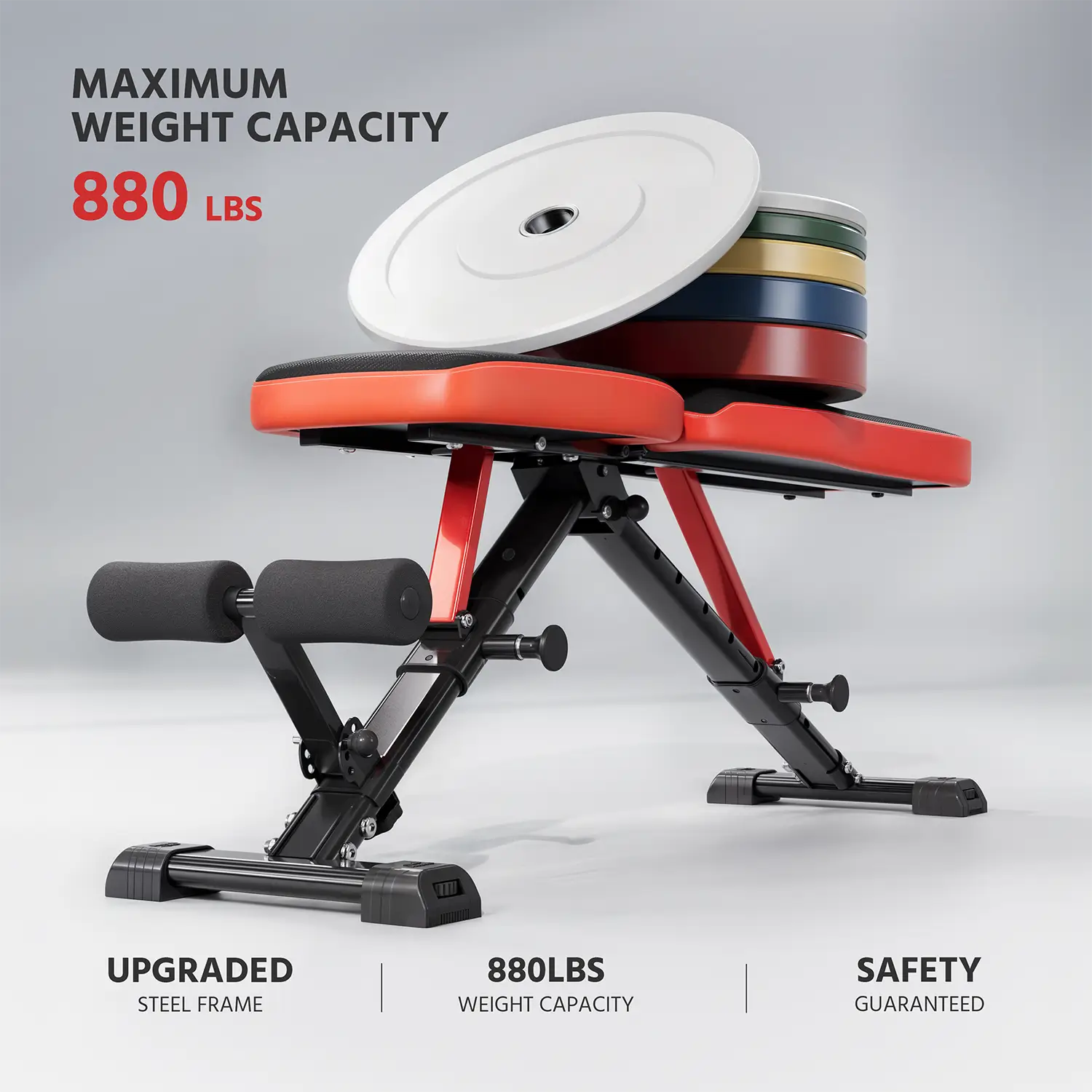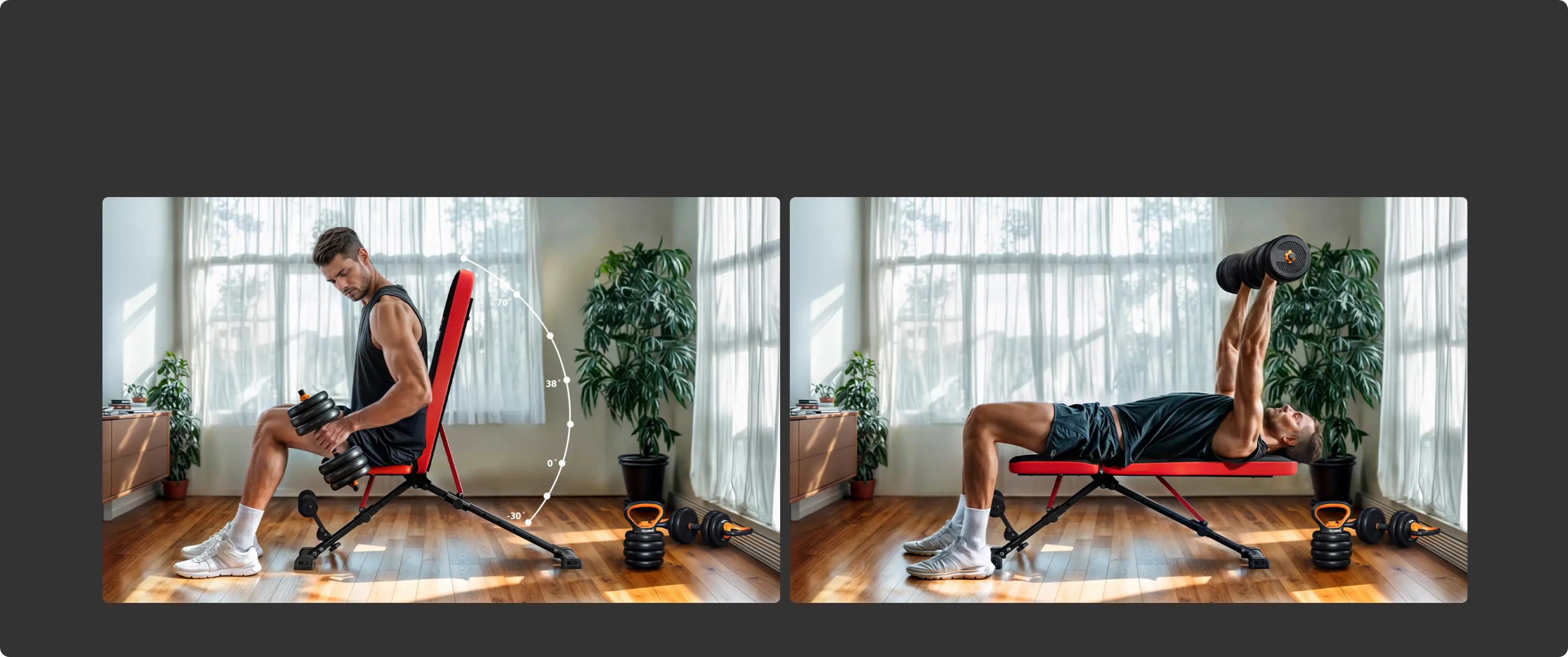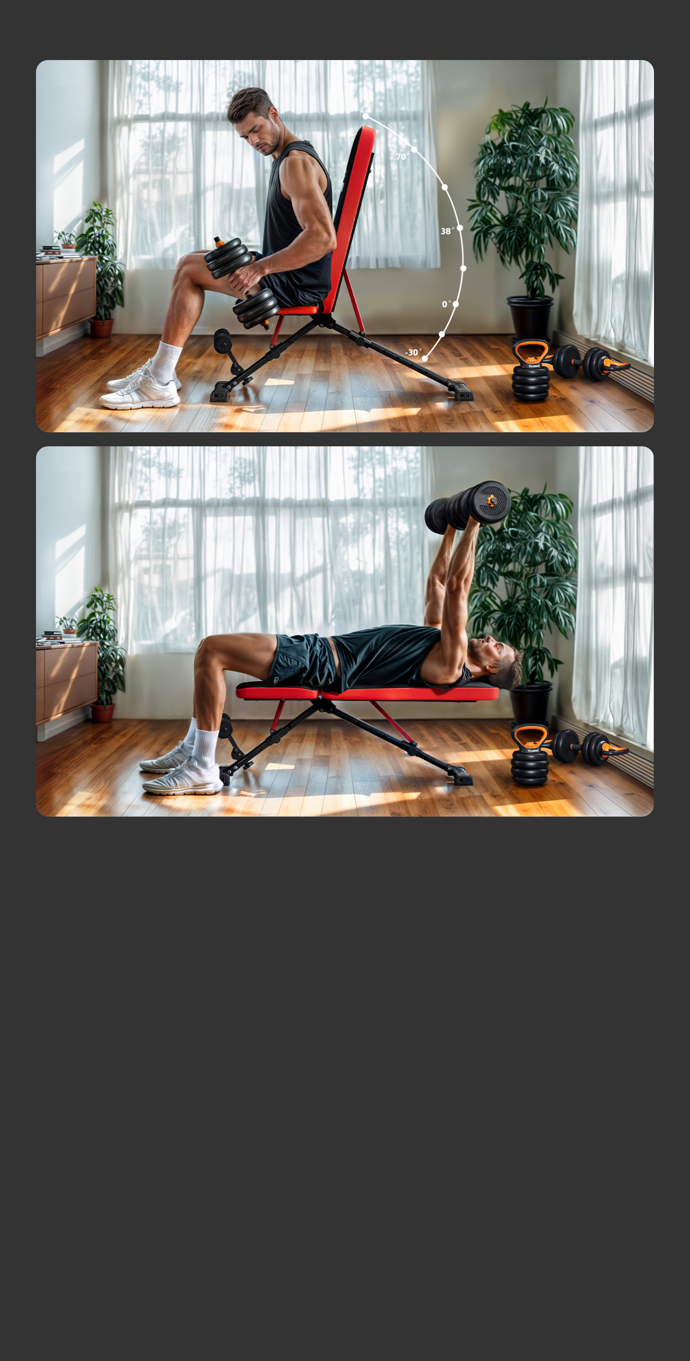 The seat features a trapezoidal design to provide better support during exercises. This weight bench offers multiple angle settings, including flat, incline, and decline positions, to meet various dumbbell workout needs such as flat, incline, and decline dumbbell presses, as well as incline ab exercises. Additionally, the 5.1" footrest helps keep your workouts stable, adding variety and making your training more enjoyable and effective.