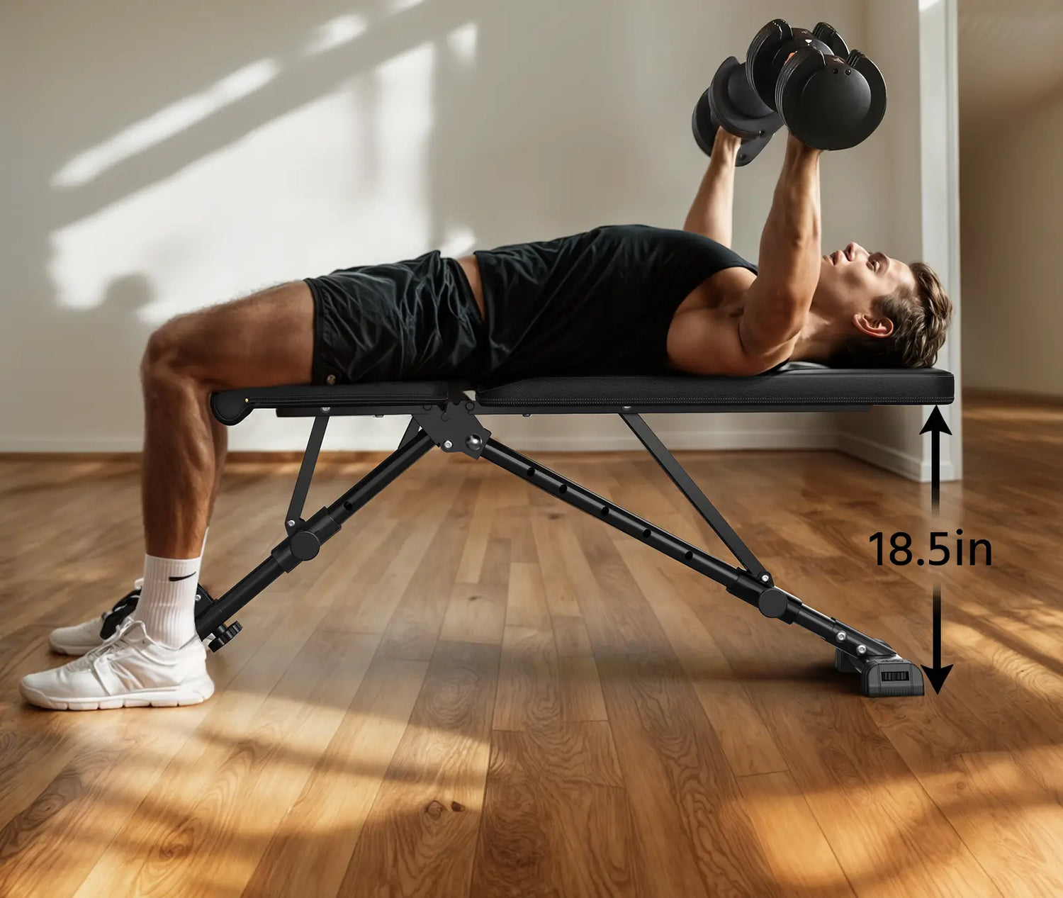A:18.5 inches from the top of the bench to the floor