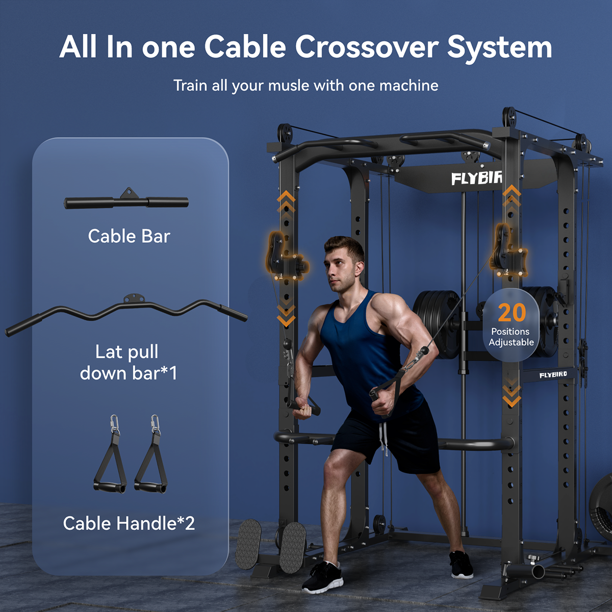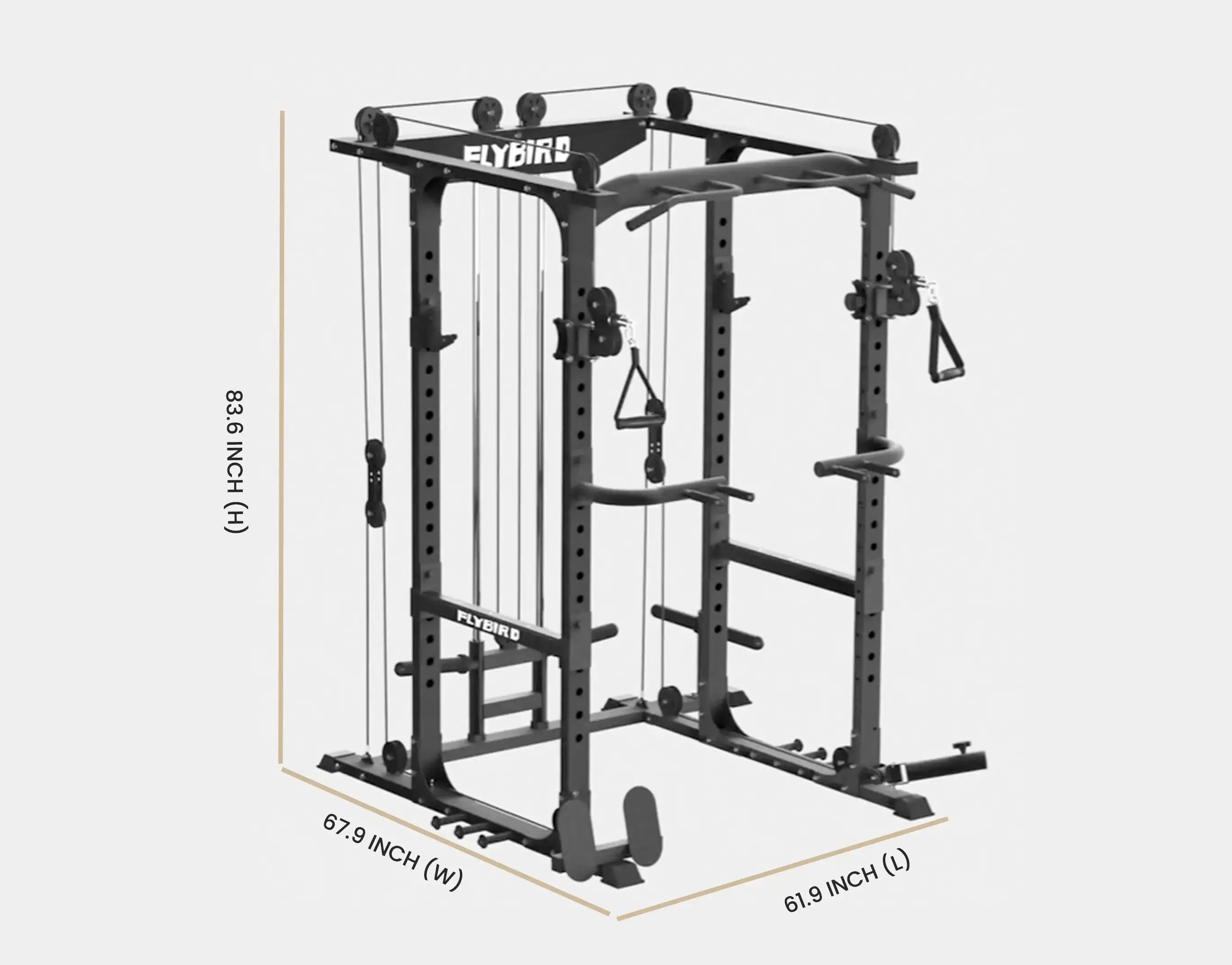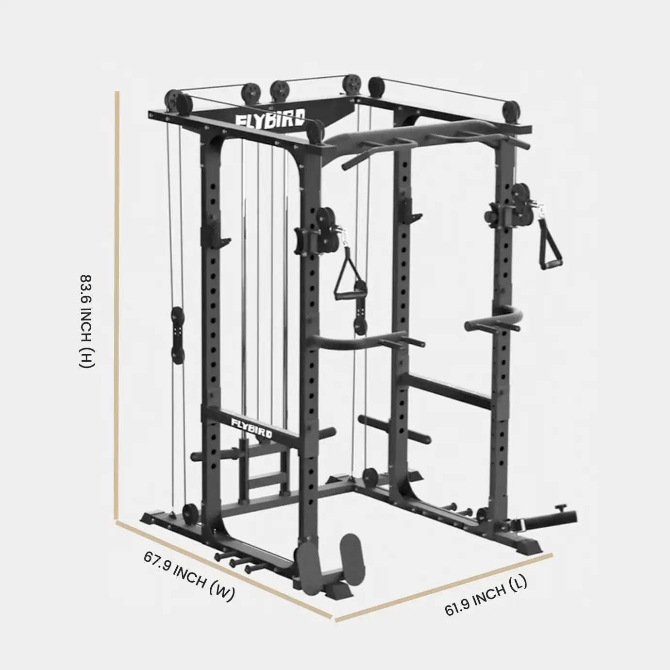 Flybird Home Gym Power Rack features a precision-engineered cable crossover machine with various free attachments.